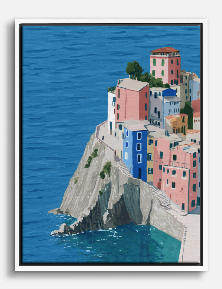 Sun-washed pastels and cliffside charm—bring a breath of Italian coastline into your home. These playful buildings perched above deep blue waves instantly transport you to a sunlit escape, no passport required.