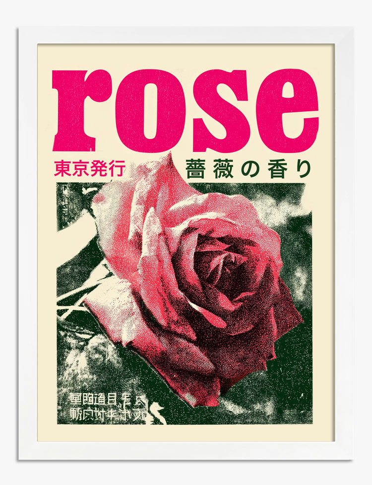 Bold, vintage vibes meet modern flair with this striking Tokyo-inspired rose print. The punchy pink typography and classic Japanese elements instantly energize any wall, making your space feel both timeless and fresh.
