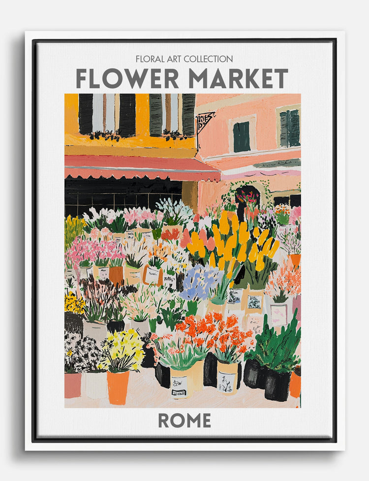 Step into a sunlit Italian street with this vibrant floral scene. The lively colors of tulips and daisies create a joyful atmosphere, perfect for energizing your living room or kitchen. Let the charm of Rome bloom in your home, effortlessly blending with modern or vintage décor. Feel the pride and joy of a space that speaks of style and warmth.