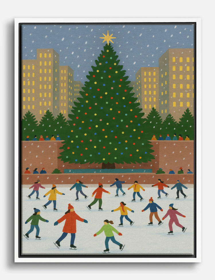 Snow swirls and laughter fills the air as friends and families glide beneath a dazzling Christmas tree. This piece instantly brings the magic of winter in the city into your home—a joyful scene that’ll make your living room or entryway feel like a holiday postcard. The rich greens and pops of primary colors play beautifully with both modern and classic decor, creating a cozy, festive vibe you’ll want to show off all season long.