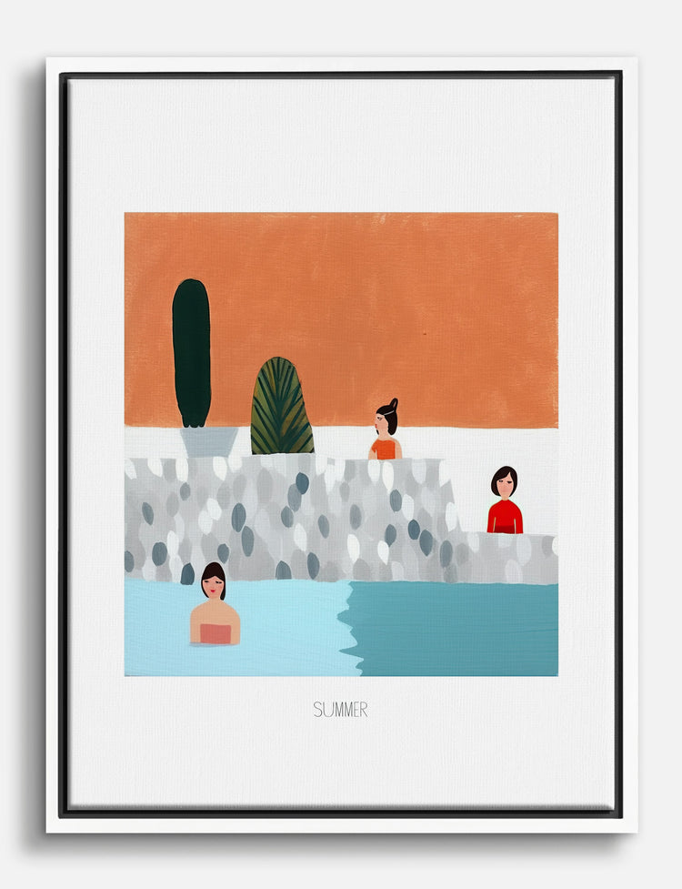 Sun-warmed stone, tranquil blue water, and playful pops of color bring easy summer vibes right to your walls. This piece instantly lifts your space with its fresh, modern take on relaxation—perfect for anyone who wants their home to feel like a sunny escape.