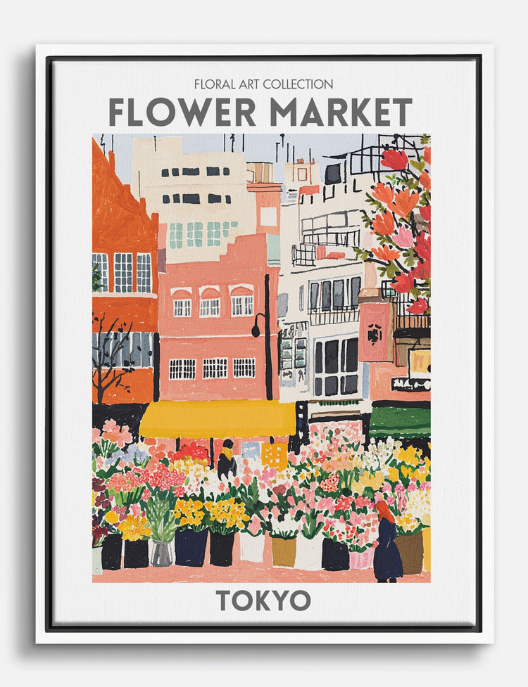 Step into the vibrant energy of Tokyo with this charming floral scene. Bursting with colorful blooms against a lively city backdrop, this piece adds a splash of joy to any room. Perfect for the living room or bedroom, its playful palette complements both modern and eclectic decor styles. Let your space sing with the spirit of a bustling flower market, bringing warmth and creativity into your home.