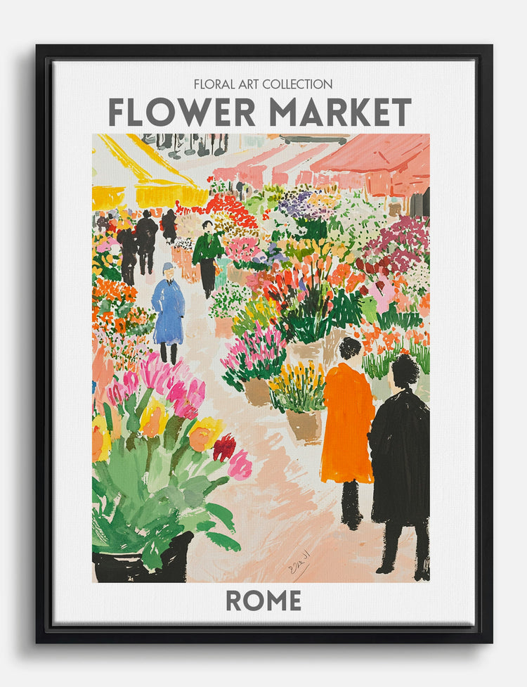 Step into the lively charm of a bustling Roman flower market. This artwork bursts with vibrant hues, capturing the essence of a city alive with color and culture. Perfect for your living room or kitchen, it brings a touch of European elegance and joyful energy to your home. The rich palette complements a variety of decor styles, making it an effortless choice for any space seeking a dash of personality and warmth.