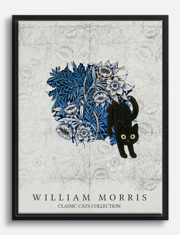 A playful black cat leaps through a tapestry of lush blue and white florals, instantly adding a dash of personality to your space. If your home craves a touch of artful charm and a hint of whimsy, this piece delivers both with effortless style. The rich indigos and crisp whites pop against any wall, making it perfect for your living room or bedroom. You’ll love how this print brings both classic elegance and a sense of fun into your everyday.