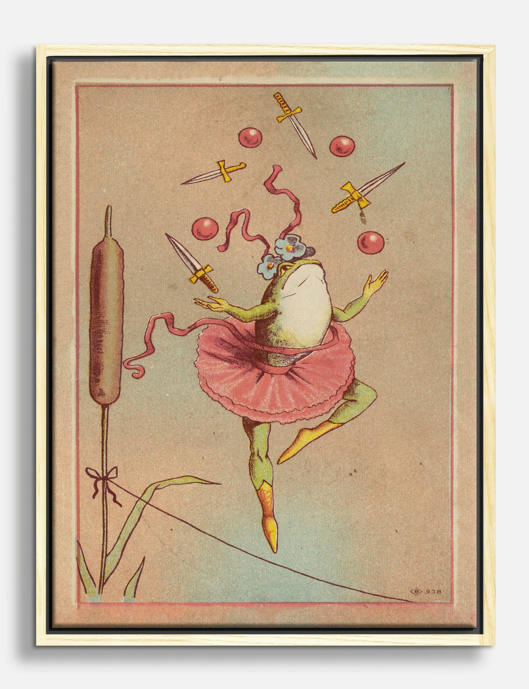 A frog in a pink tutu, leaping mid-air as it juggles swords and shimmering orbs—this piece brings a burst of playful confidence to your space. It’s quirky, unexpected, and guaranteed to make you smile every time you pass by.