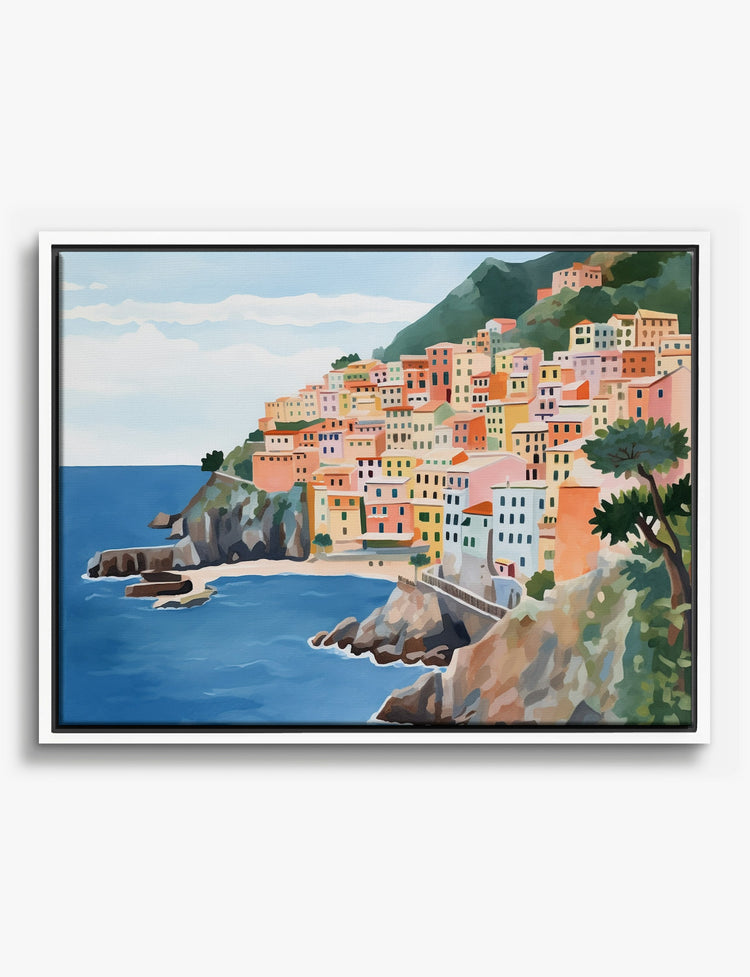 Sun-washed houses tumble down the cliffs, each one painted in a joyful hue that instantly lifts the mood of your space. This vibrant scene captures the irresistible charm of Italy’s Cinque Terre—where every window offers a postcard view of the sparkling Mediterranean. Perfect for your living room or bedroom, this piece brings a burst of energy and wanderlust, making you feel like you’re always one step away from a seaside adventure. The playful palette of corals, blues, and soft pastels pops against both modern and classic decor, adding warmth and personality wherever it hangs. Let your walls do the traveling. With this print, you’ll transform your home into a bright, inviting retreat that always feels ready for guests—and for your next daydream.