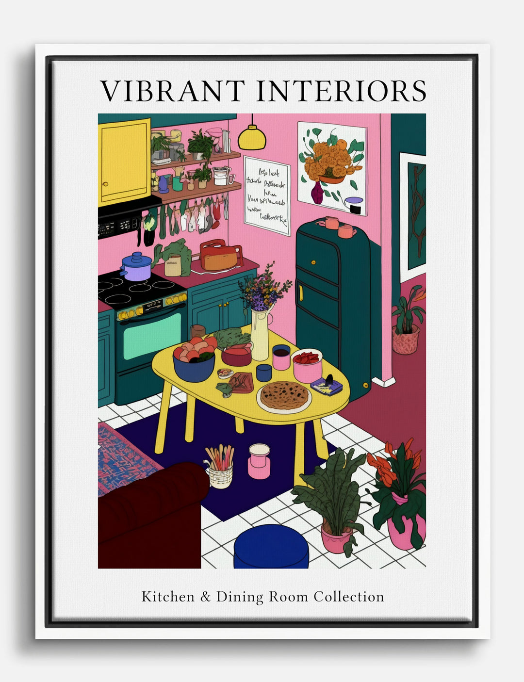 A lively kitchen scene bursts with personality, inviting you to savor every moment at home. Pops of pink, green, and yellow set a playful, energetic mood—perfect for anyone who loves a space that feels as joyful as a celebration. Picture this in your kitchen or dining room, where it’ll inspire fresh conversations and proud hosting moments.