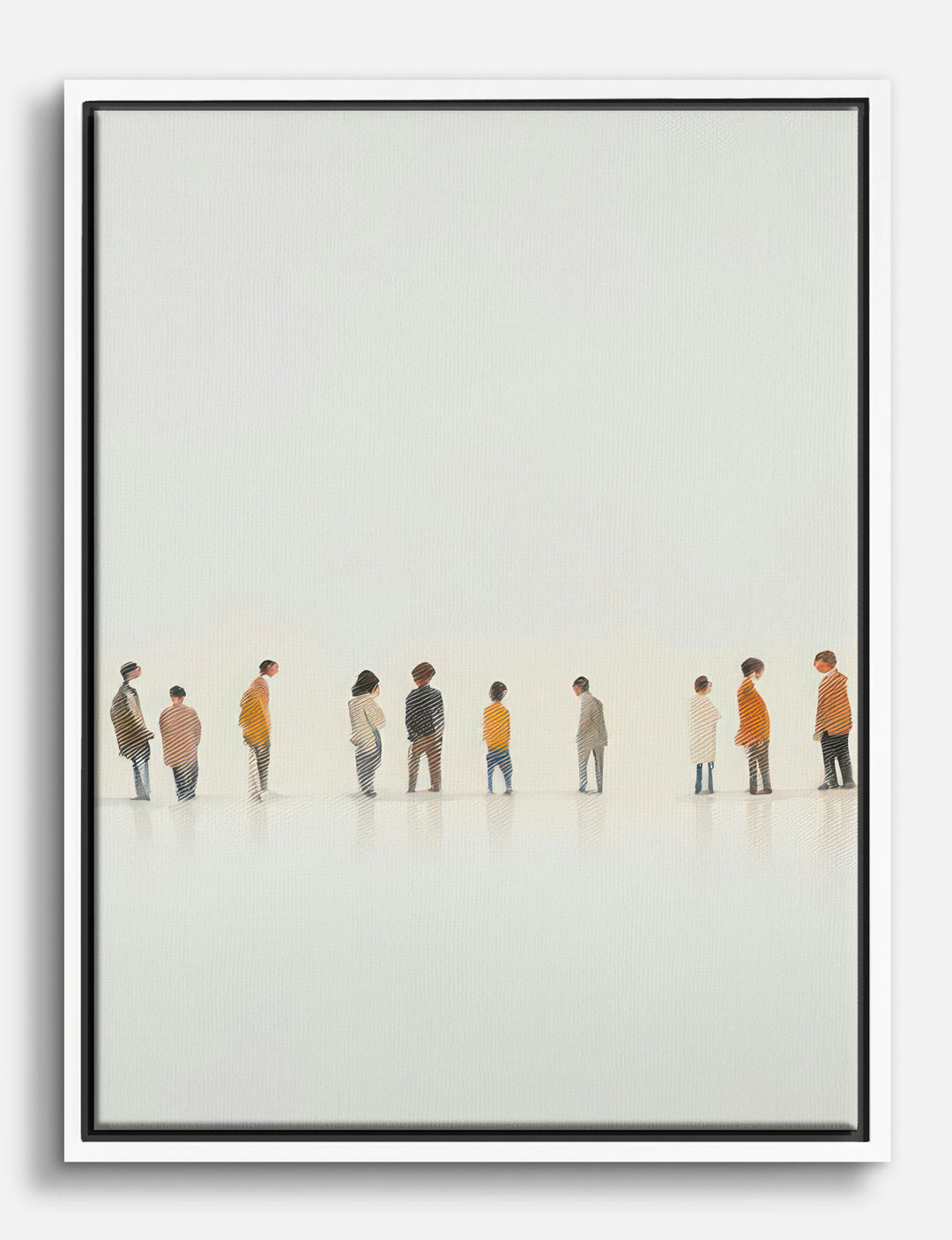 A line of colorful figures stands against a serene backdrop, offering a moment of calm and contemplation. This minimalist piece brings a gentle yet striking presence to your space, perfect for sparking conversation in your living room or adding a touch of sophistication to your office. The soft hues blend effortlessly with a variety of decor styles, inviting a sense of peace and unity into your home.