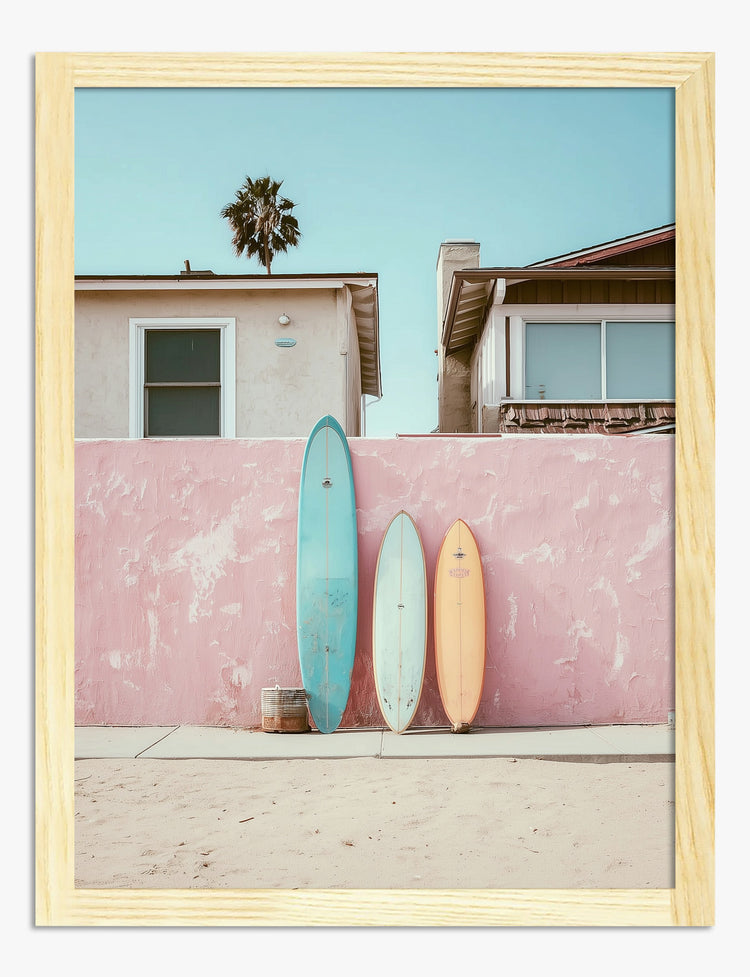 Sun-kissed mornings and endless summer afternoons—let this piece bring that breezy, beach-town spirit right into your home. Three surfboards, each in soft, retro hues, lean casually against a blush pink wall, inviting you to slow down and savor the moment. It’s the perfect pick-me-up for your living room or bedroom, adding a playful pop of color and a laid-back, coastal energy. The pastel palette blends effortlessly with modern, minimalist, or boho decor, making every space feel lighter and brighter. Youll feel a spark of pride each time you catch a glimpse—proof that your space can be stylish, joyful, and uniquely you, no matter where you live. With Fab, transforming your home into a personal oasis is as easy as hanging up a print.