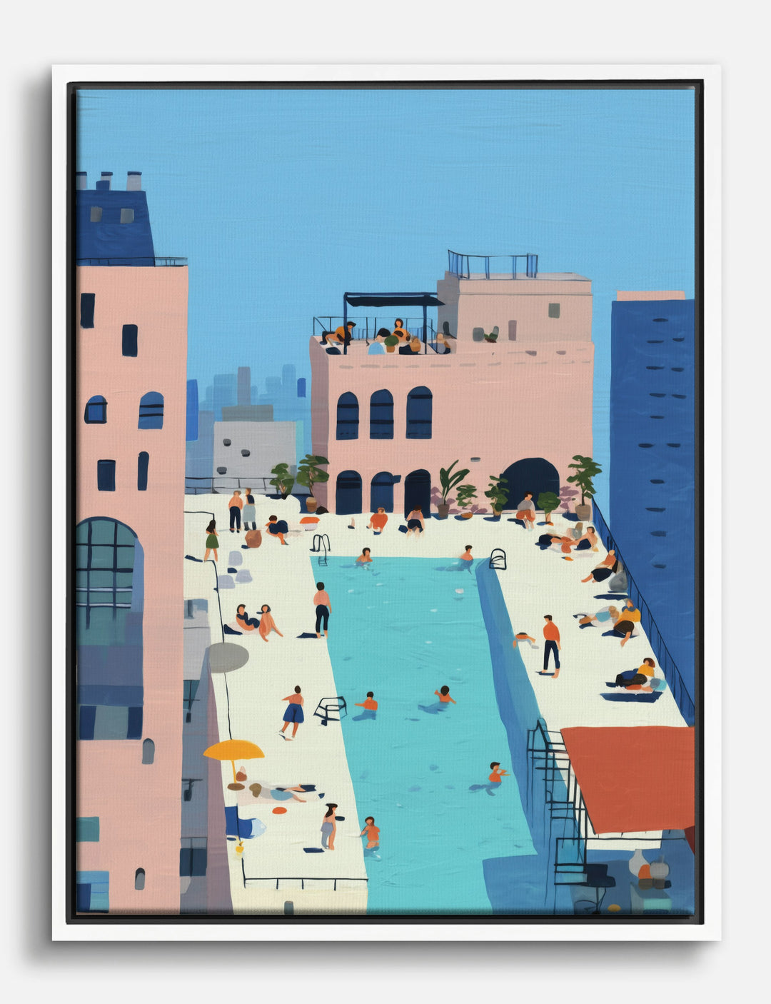 Sun-soaked rooftops, cool blue water, and a city skyline—this piece is pure summer escape. You’ll feel that laid-back, vacation energy every time you walk by, whether you hang it in your living room or add a playful vibe to your office. The fresh pastel palette pops against modern neutrals and softens any space, making it easy to feel proud of your effortlessly stylish taste. Why just dream of city adventures when you can bring them home?