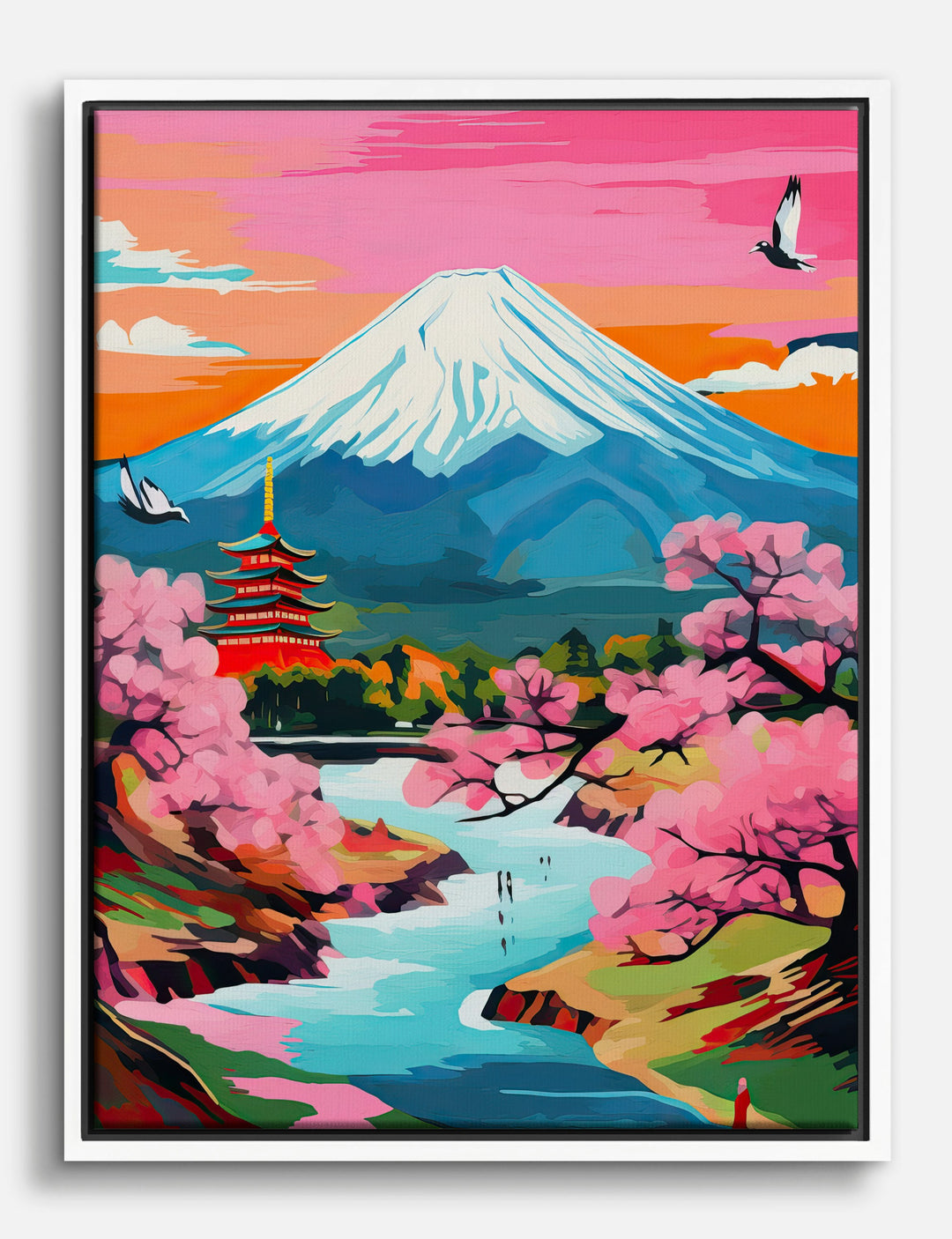 A burst of pink cherry blossoms frames the iconic majesty of Mount Fuji, inviting a sense of calm and wanderlust into your space. This vibrant scene pops with joyful color—think dreamy sunsets, tranquil rivers, and the timeless beauty of Japan, all in one glance.