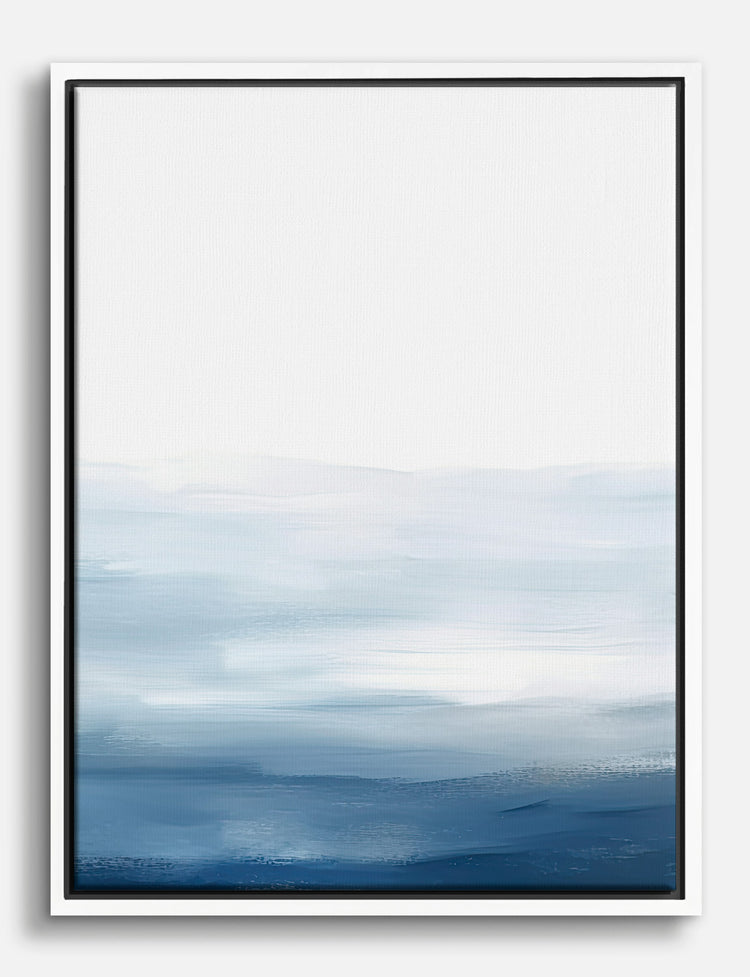 Dive into tranquility with the calming hues of this abstract piece. The gentle blend of blues and whites creates a soothing atmosphere, perfect for your living room or bedroom. This artworks minimalist palette effortlessly complements a variety of decor styles, adding a touch of elegance and serenity to your space. Transform your home with a piece thats as unique as you are, and enjoy the pride of a stylish, serene sanctuary.