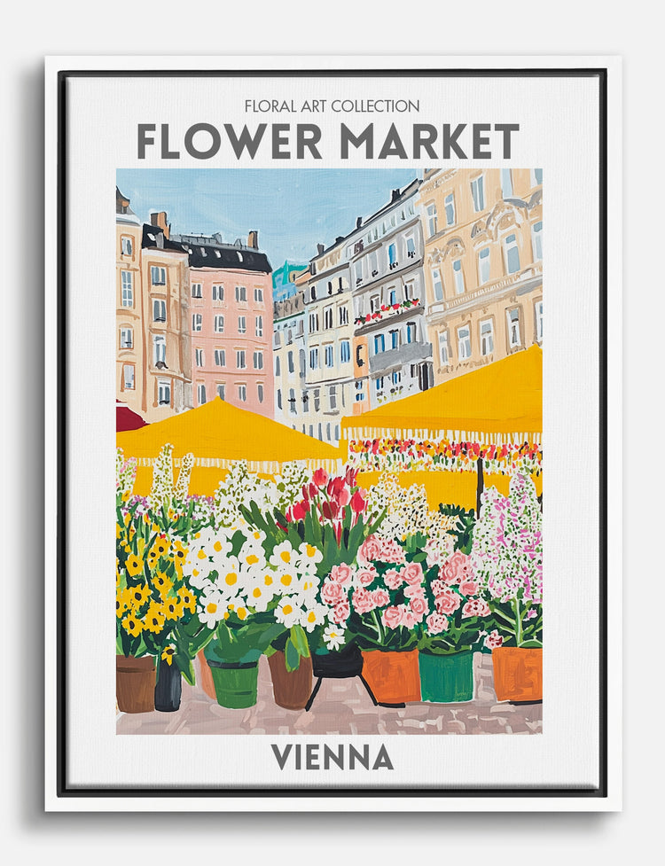 Step into a vibrant world where Viennas charm meets floral splendor. This piece brings the lively energy of a flower market right into your space, perfect for brightening up your living room or dining area. With its warm yellows and lush greens, it harmonizes beautifully with both modern and vintage decor, inviting joy and a touch of European elegance into your home. Transform your walls with this delightful burst of color and style.