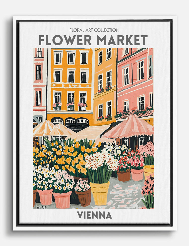 Step into the vibrant streets of Vienna with this captivating artwork. Bursting with lively hues of yellow and pink, it brings the charm of a bustling flower market right into your home. Perfect for your living room or kitchen, this piece effortlessly complements a variety of decor styles, adding a touch of European elegance. Feel the joy and pride of transforming your space into a haven of style and comfort.