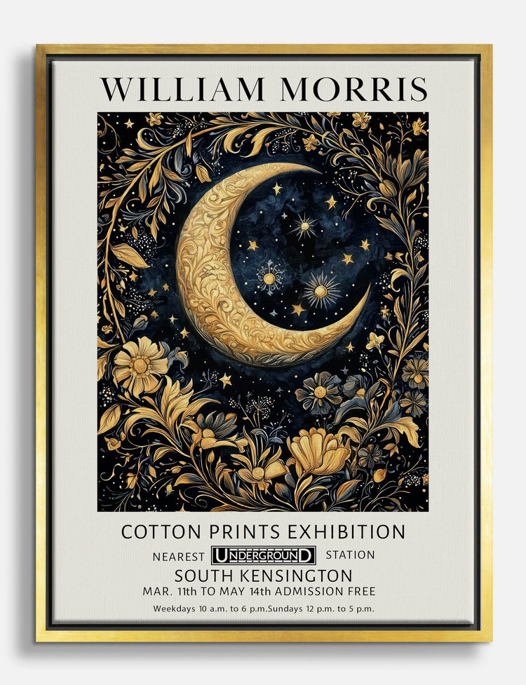 Let your walls tell a story of celestial beauty with this enchanting William Morris-inspired piece. The intricate dance of moonlight and golden florals brings a touch of vintage elegance to any room. Perfect for your bedroom or living room, its deep navy and gold palette complements both modern and classic decor, inviting warmth and wonder into your space. Experience the joy of transformation with art that feels both timeless and uniquely yours.