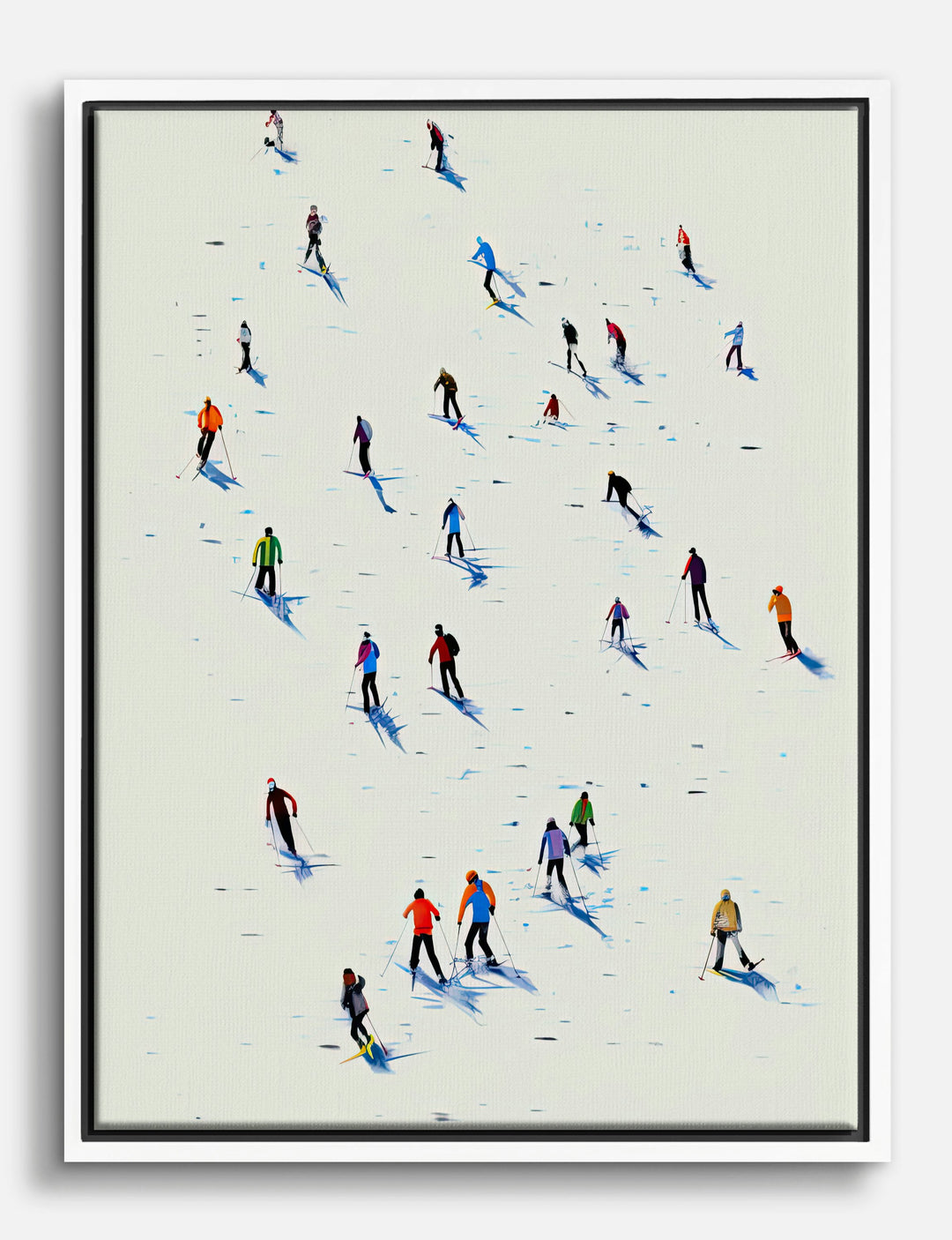 A flurry of color brings winter to life—each figure gliding across the snow feels like a celebration of movement and togetherness. This piece pops with playful energy, instantly brightening any space with its joyful, modern vibe.
