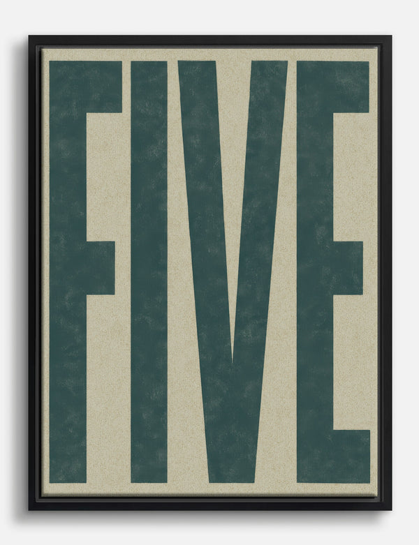 Canvastavlor Five – djärv typografi i djup petrolblå
