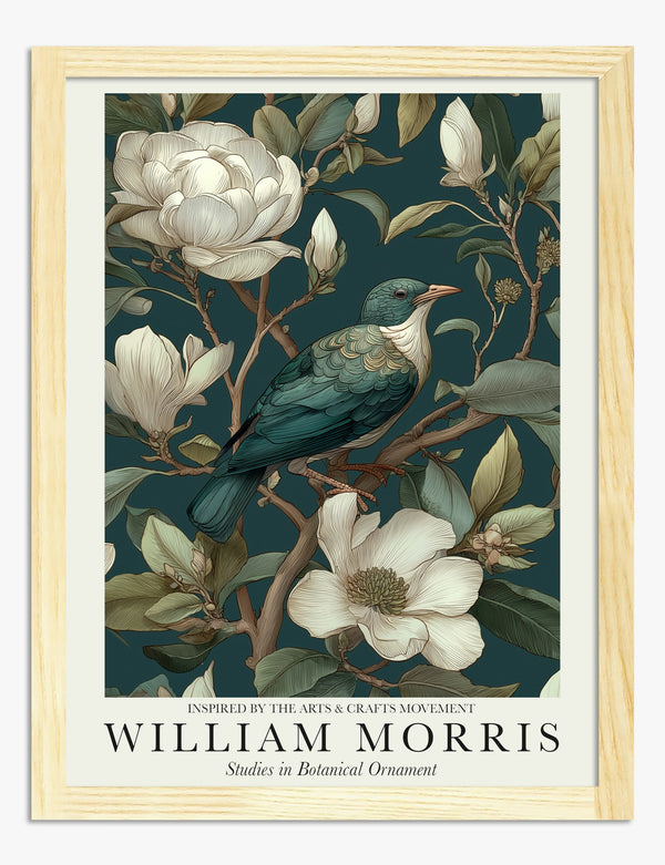 Poster botanisk fågel i William Morris-stil