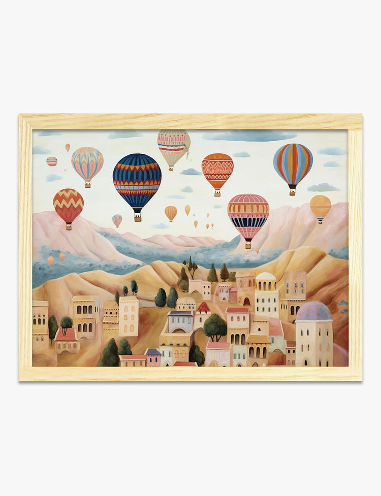 A sky alive with color and wonder—this piece instantly uplifts your space with its playful parade of hot air balloons floating above a dreamy hillside village. You’ll feel transported every time you glance up, as if you’re drifting high above the rooftops, wrapped in the calm of pastel mountains and sun-washed homes. Perfect for your living room or bedroom, this artwork adds a sense of adventure and lighthearted charm that’s always in style. The soft peach, blue, and beige palette works beautifully with cozy neutrals, boho textures, or even more modern decor. Let this print be your daily reminder that life’s full of beautiful journeys—no passport required. With Fab, transforming your walls into something truly unique is easier (and more affordable) than ever.
