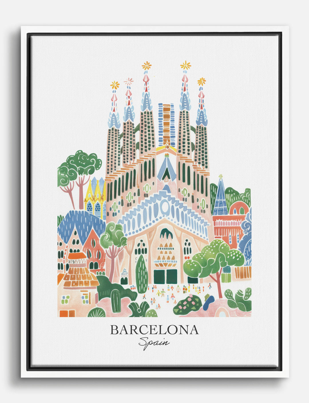 Step into a world where vibrant colors and architectural wonders collide. This charming illustration of Barcelona captures the whimsical essence of its iconic landmarks. Perfect for your living room or office, the playful palette will enliven any space and spark joy every time you glance its way. Let this piece transport you to the heart of Spain, infusing your home with a touch of artistic flair.