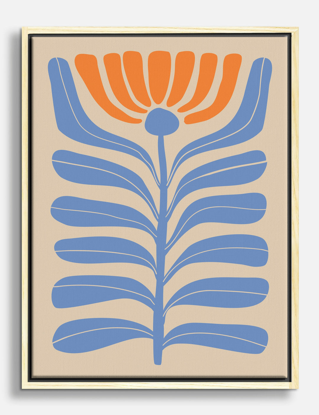 A single stem, endless impact. This playful floral design pops with soft blue leaves and radiant orange petals, bringing instant energy to any space. It’s a bold, modern twist on retro botanicals—perfect for when your walls need a gentle pick-me-up.