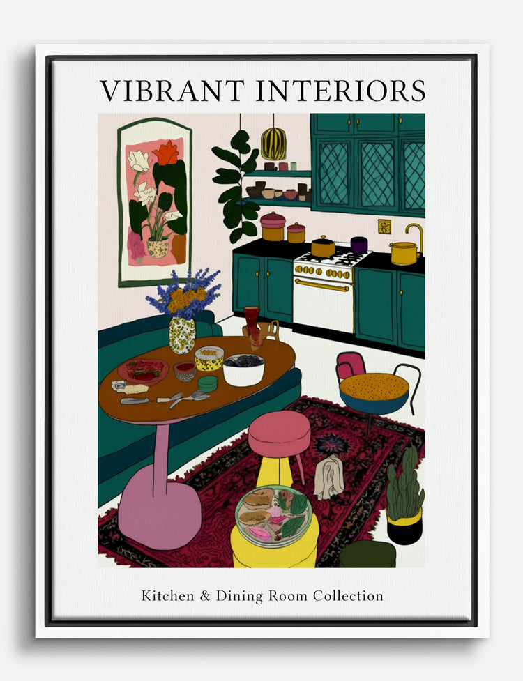 Step into a world where every meal feels like a celebration. This playful, color-rich scene infuses your kitchen or dining area with instant warmth and personality. Deep greens, vibrant reds, and golden accents create a space that feels both inviting and effortlessly stylish.