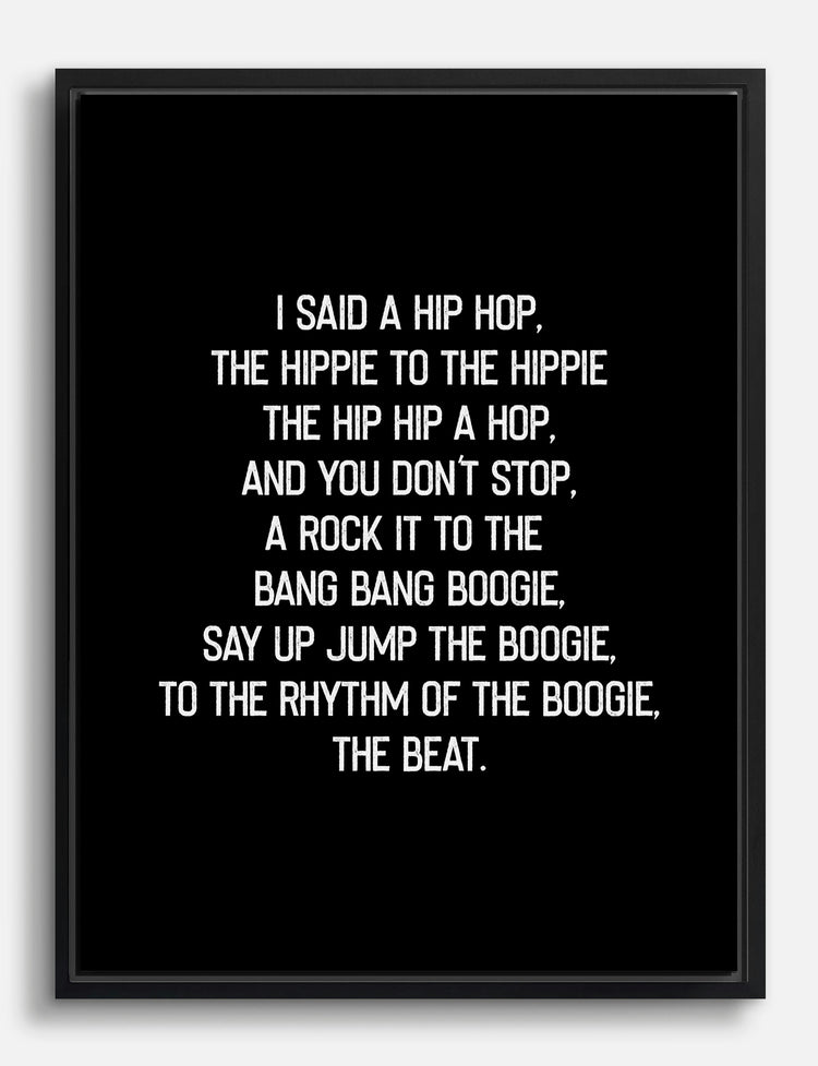 Feel the rhythm of your space shift with these iconic hip hop lyrics front and center. The bold black-and-white palette brings instant energy and attitude, making any wall pop with personality. Perfect for your living room or home office, this piece is a daily reminder to keep the beat alive and let your style speak.
