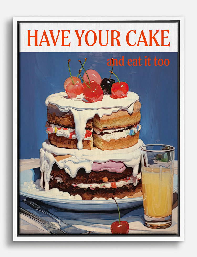 Bold, playful, and just a bit cheeky—this piece is a celebration of life’s sweetest moments. A towering cake dripping with icing and crowned with cherries instantly energizes your kitchen or dining nook, sparking joy every time you walk in. The soft whites and creamy pastels pop against a blue background, making it easy to mix with modern or vintage decor. Hang it up and let every day feel a little more festive, a little more “you”—because you deserve to have your cake and eat it, too.