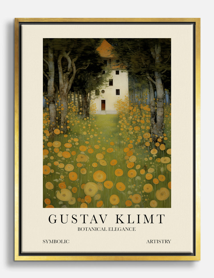 A sunlit path of golden blooms welcomes you home, drawing the eye toward a charming, storybook tower nestled in the trees. Klimt’s botanical wonder brings a sense of calm magic and quiet luxury to your space, perfect for the living room or bedroom. The lush greens and warm golds pair effortlessly with both modern and vintage decor, inviting a little everyday enchantment into your home. You’ll feel proud every time you see this piece lighting up your favorite corner.