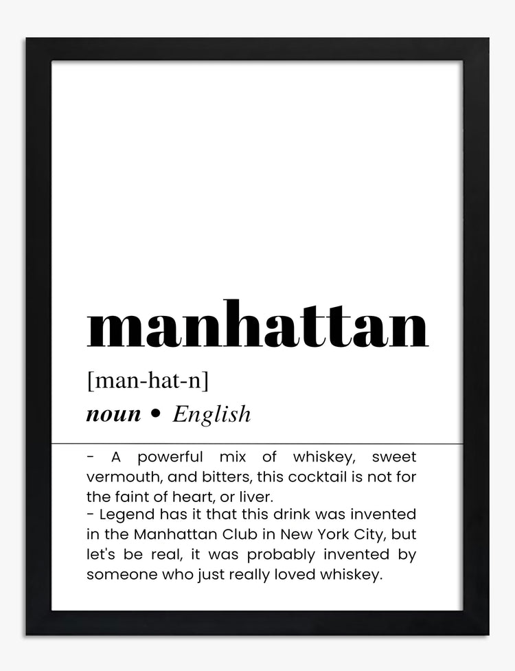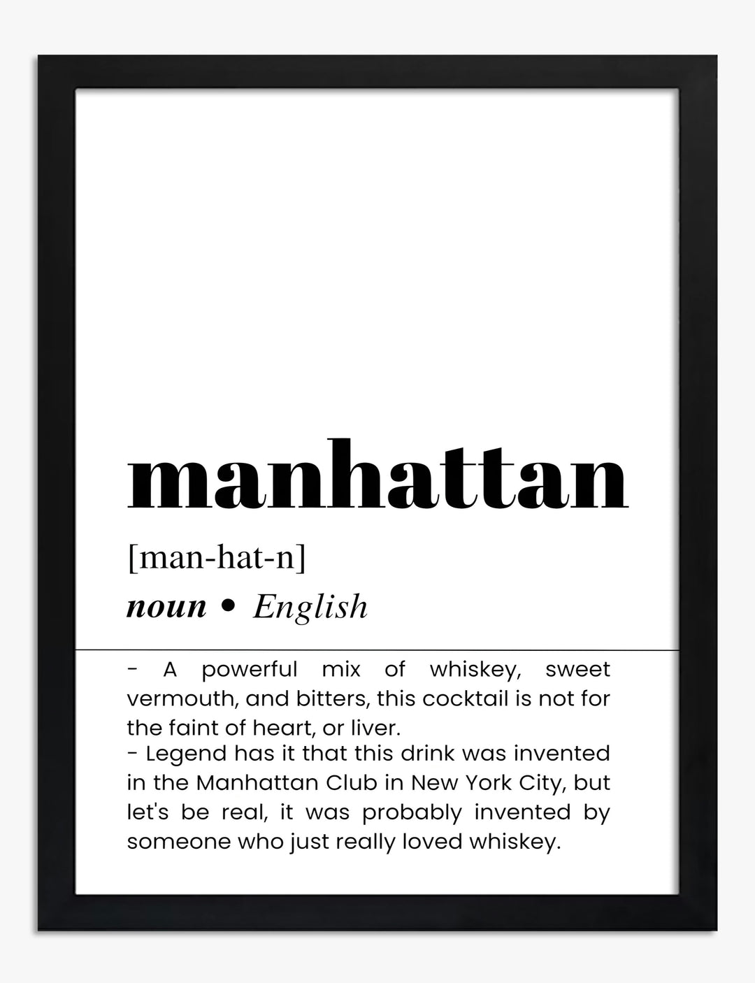 Bold, witty, and just a little bit cheeky—this Manhattan-inspired print is your license to show off your love for classic cocktails with style. Whether you’re a whiskey connoisseur or just love a dash of humor in your décor, this piece instantly adds personality to your home.