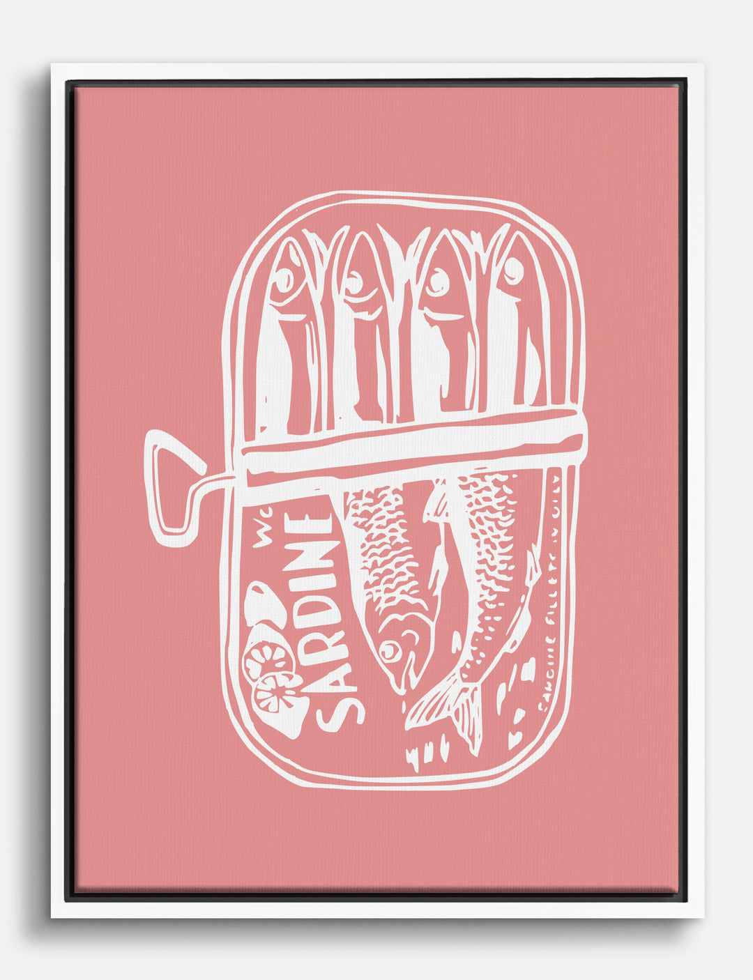 Who knew a can of sardines could feel so fresh and fun? This playful print brings a wink of retro-cool to your walls, combining quirky charm with a bold pink punch. The crisp white illustration pops against the rosy background, instantly adding character and conversation to any space.