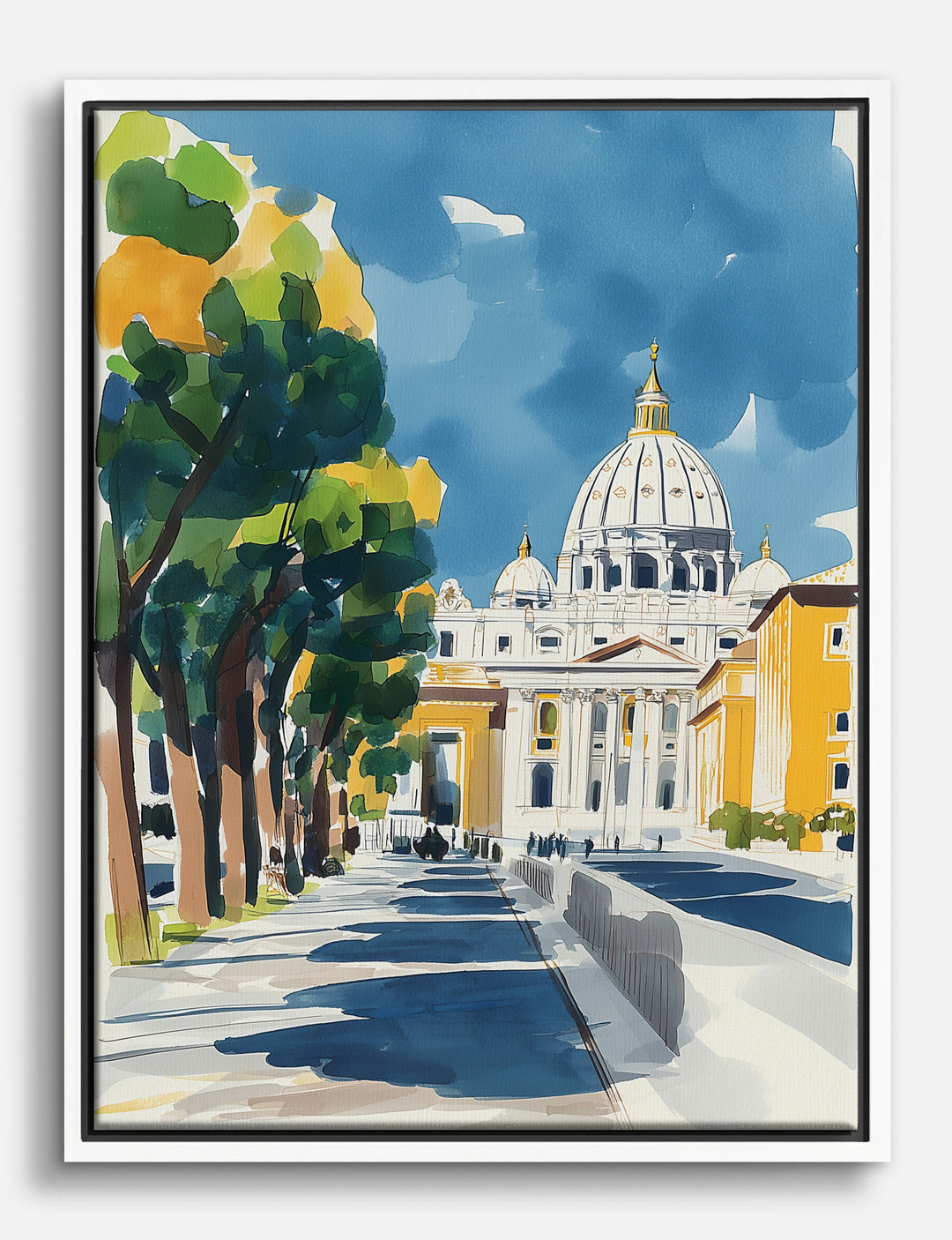 Step into a sun-drenched Roman morning every time you walk by this piece. Vivid splashes of blue and gold capture the timeless elegance of Rome’s architecture, while leafy green trees cast cool shadows along a welcoming avenue. You’ll feel the energy and history of the city radiate through your space—whether it’s your living room, office, or entryway.