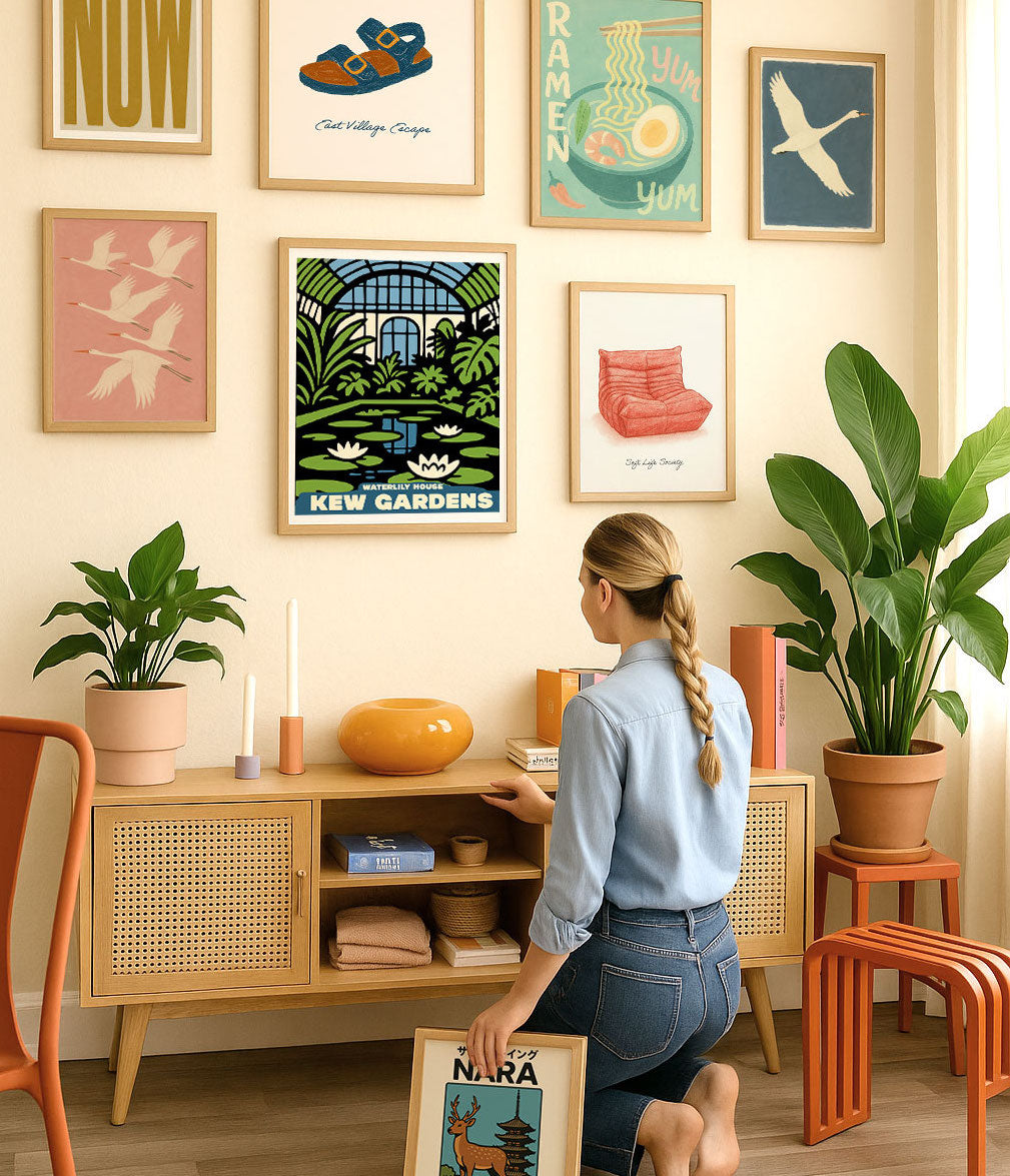 På Fab gör vi det enkelt att förvandla ditt utrymme utan krångel. Varje verk kommer inramat, redo att hängas upp och tillverkat med material i gallerikvalitet – så att dina väggar kan uppgraderas på några minuter, inte månader. Vi producerar allt lokalt för att leverera snabbare, minska utsläppen och slippa tullproblem. Och eftersom varje print görs på beställning blir det inget svinn, ingen massproduktion och ingen väntan. Bara ny, högkvalitativ konst, skapad bara för dig.