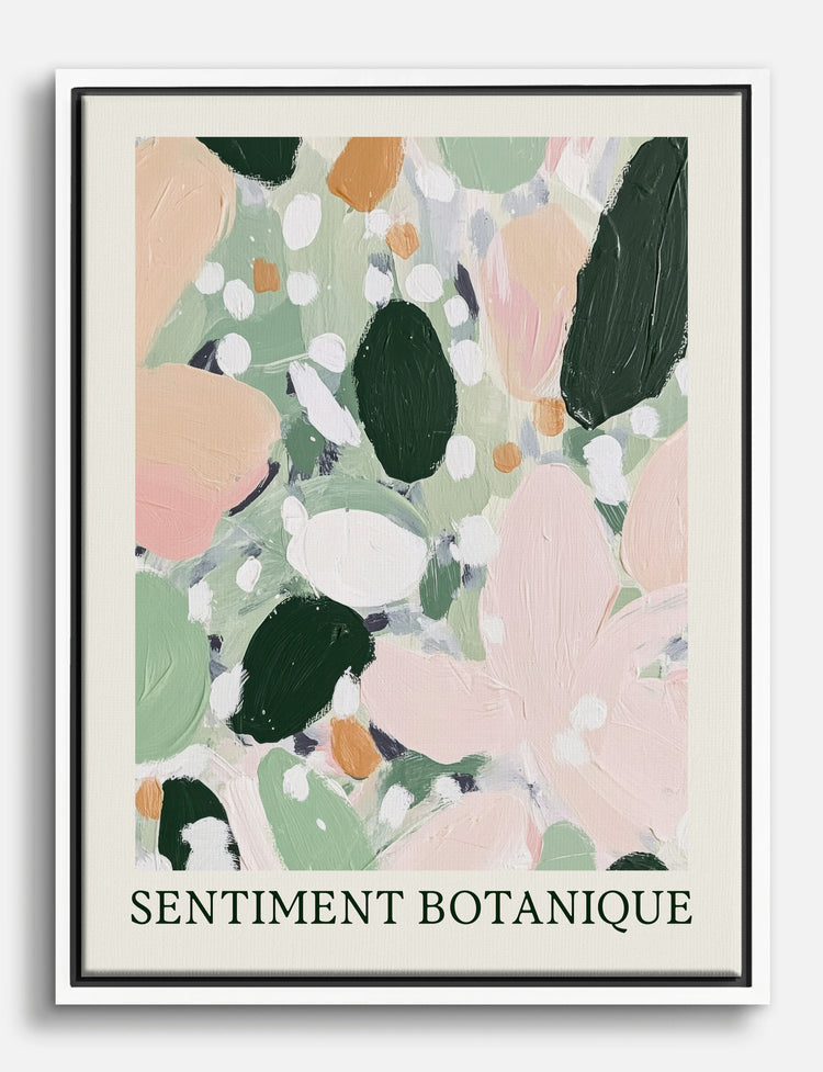 Let your room bloom with the soft, organic shapes of Botanical Sentiment. This abstract piece weaves calming greens and gentle pinks, bringing a touch of natures elegance to your space. Perfect for your living room or bedroom, its soothing palette complements a variety of decors, infusing your home with a sense of peace and style. Transform your walls effortlessly and enjoy the pride of a stylish sanctuary.