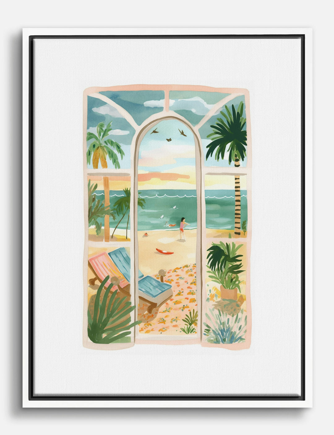 Step into a serene paradise every time you glance at this artwork. With its soothing beach scenes framed by palm trees and vibrant skies, its like a mini-vacation for your wall. Perfect for a living room or bedroom, this piece adds a splash of tranquility and warmth to your decor. Its gentle hues blend effortlessly with various styles, making it a versatile choice for any home. Transform your space into a coastal retreat and feel the joy of effortless style.