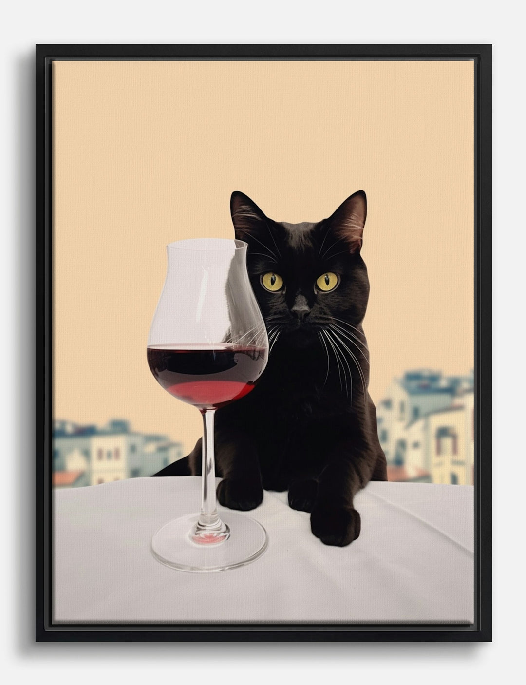 Ever wondered how a touch of whimsy could change your space? This charming piece, featuring a poised black cat with a glass of wine, brings a playful elegance to any room. Perfect for your dining area or living room, it adds a dash of personality and a splash of humor. The warm tones and striking contrast make it a versatile addition, perfectly complementing both modern and eclectic decors. Let this unique artwork inspire joy and creativity in your home.