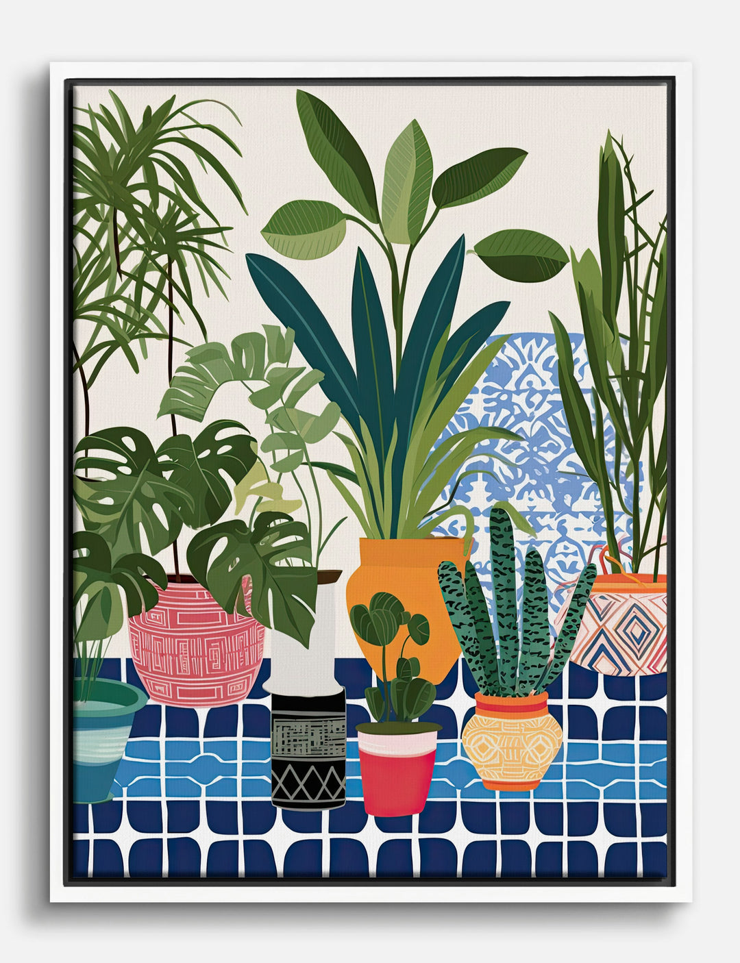 A lush celebration of color and life, this piece instantly energizes any space with its playful lineup of potted greenery. Let your walls burst with personality—every plant, every pot, is a stylish invitation to relax and recharge.