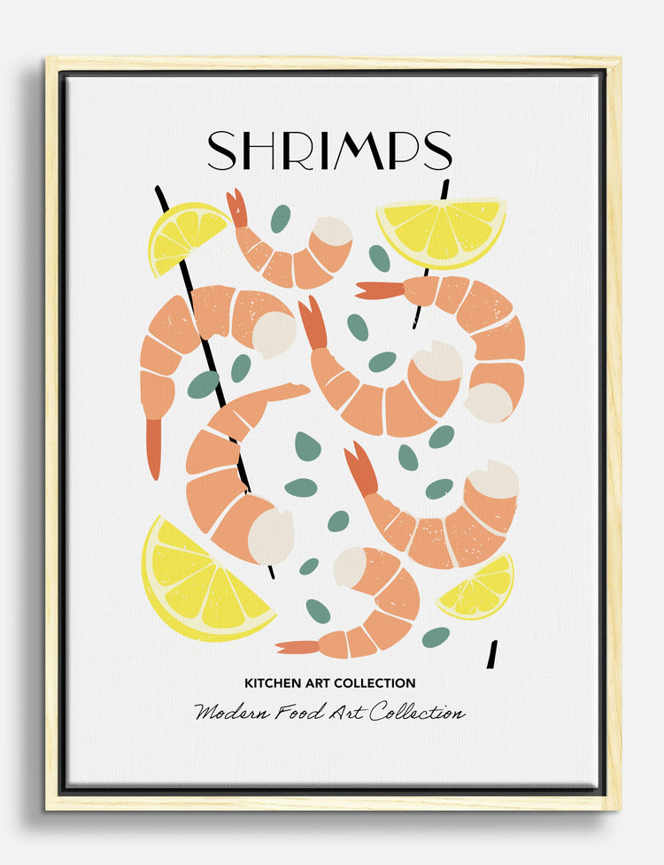 Fresh, playful, and bursting with charm—this print serves up a splash of kitchen joy. Plump, pastel shrimps swirl with lemon wedges in a lively mid-century modern dance, adding instant personality to your culinary space. Youll love how the soft peach, yellow, and green tones pop against crisp white, brightening your kitchen or dining nook with effortless style.