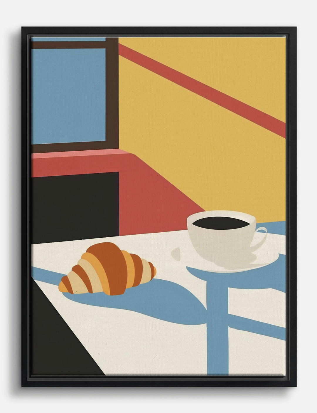 Start your day with a dash of elegance. This charming piece captures the simple joy of a fresh croissant and steaming coffee, evoking a cozy café vibe right in your home. With warm hues and a minimalist style, it’s perfect for your kitchen or dining room, adding a touch of European sophistication. Let it inspire your mornings, bringing pride and style to your space effortlessly.
