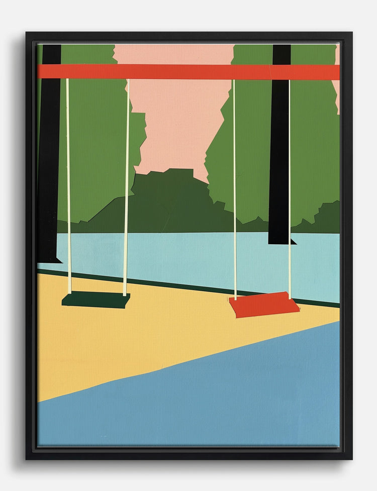 Feel the joy of carefree days with this vibrant piece that brings a playful touch to any room. The bold, colorful swings invite you to reminisce about childhood adventures while adding a splash of color to your decor. Perfect for a living room or kids room, this artworks dynamic palette complements modern and eclectic styles, infusing your space with energy and fun. Transform your home into a haven of joy and self-expression, all within reach.