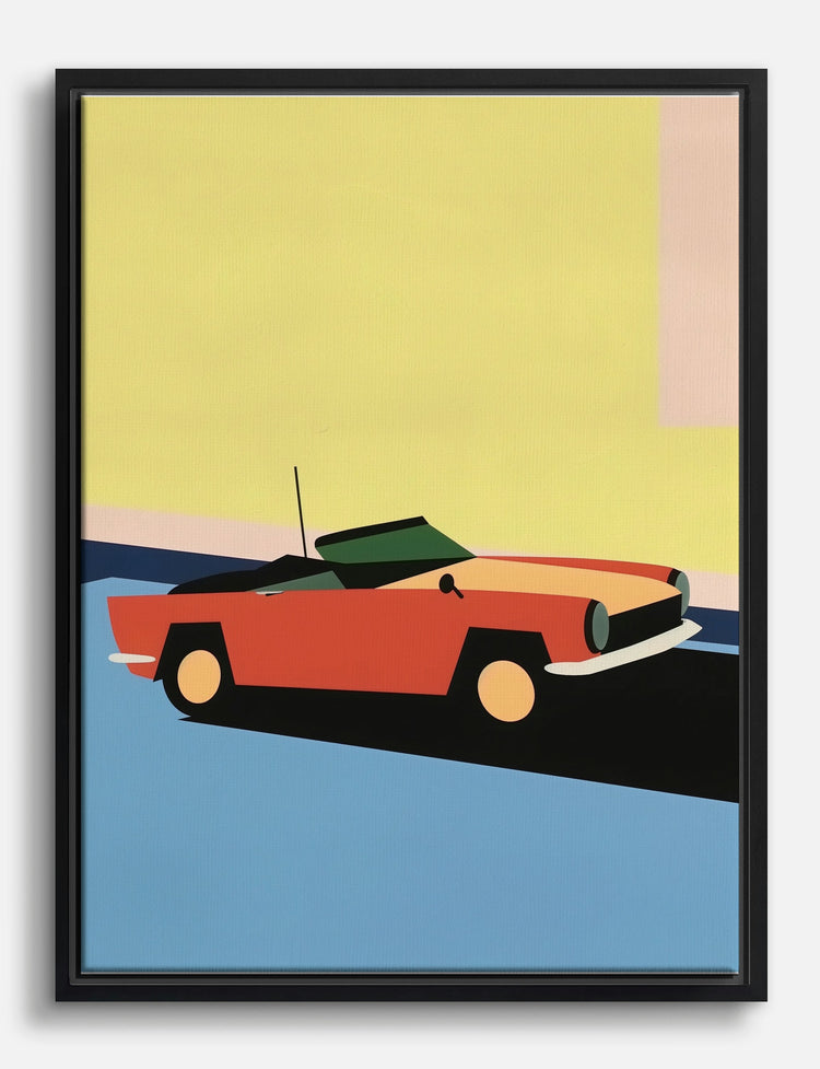 Feel the thrill of the open road with this vibrant retro car piece. Its bold lines and playful colors will inject energy into your living space, making it perfect for a lively living room or a stylish office. The artworks dynamic color palette complements both modern and vintage decor, inviting a sense of freedom and joy into your home. Transform your walls with this unique, accessible piece that promises to be a conversation starter.