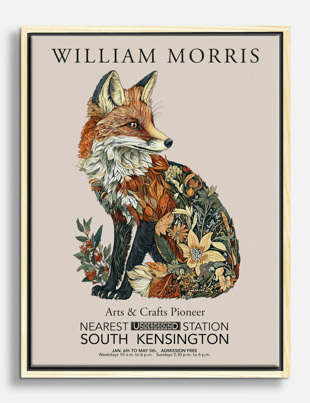William Morris Floral Fox Canvas Print