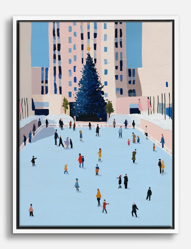 Step into the magic of the season with this vibrant cityscape, where skaters glide beneath a towering tree and the city buzzes with winter cheer. The pastel tones and lively scene instantly bring warmth and energy to your space—perfect for making your living room or entryway feel festive and inviting.